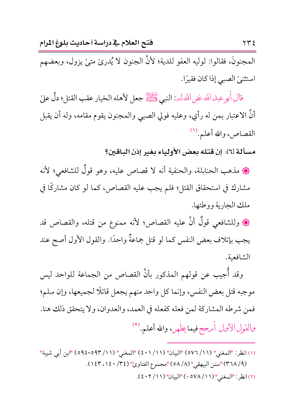 (¬١) انظر: «المغني» (١١/ ٥٧٦) «البيان» (١١/ ٤٠١) «المغني» (١١/ ٥٩٣ - ٥٩٤) «ابن أبي شيبة» (٩/ ٣٦٨) «سنن البيهقي» (٨/ ٥٨) «مجموع الفتاوى» (٣٤/ ١٤٠، ١٤٣).