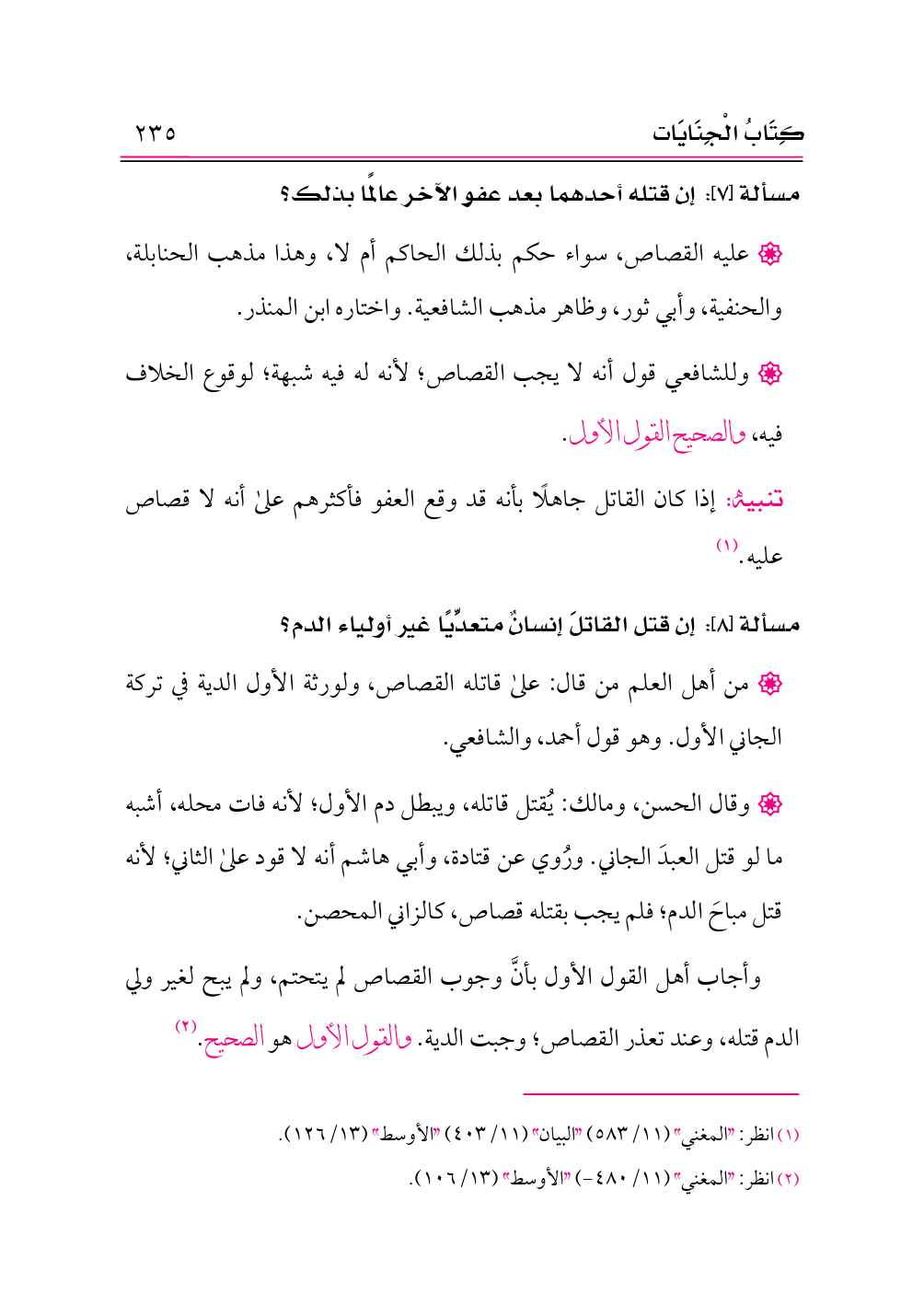 (¬١) انظر: «المغني» (١١/ ٥٨٣) «البيان» (١١/ ٤٠٣) «الأوسط» (١٣/ ١٢٦).