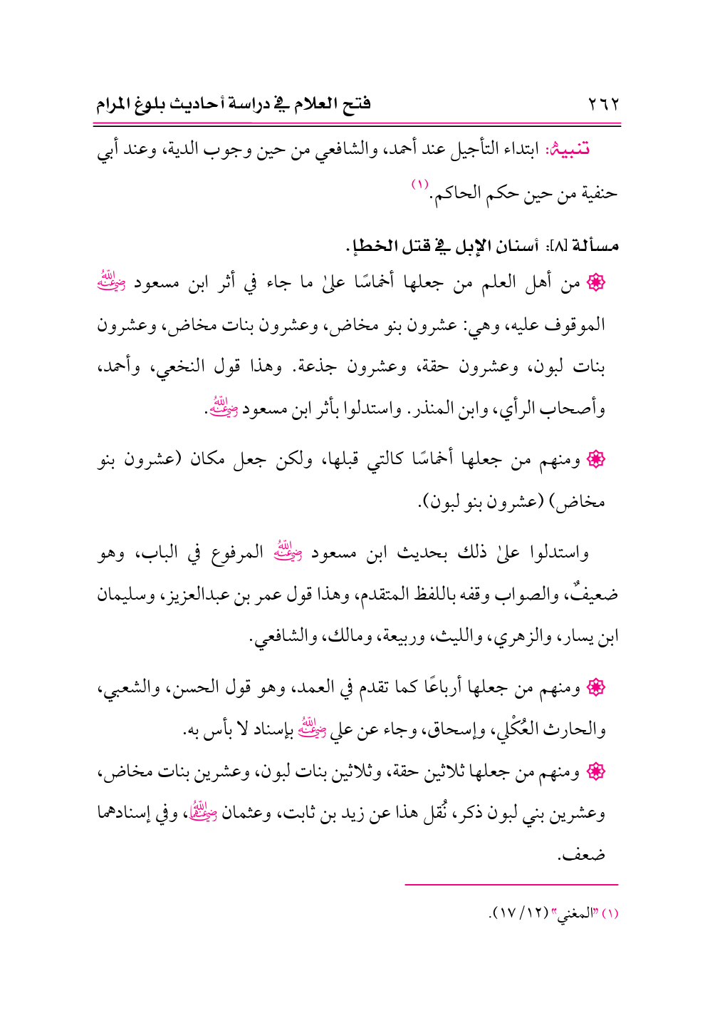 مسألة [٨]: أسنان الإبل في قتل الخطإ.