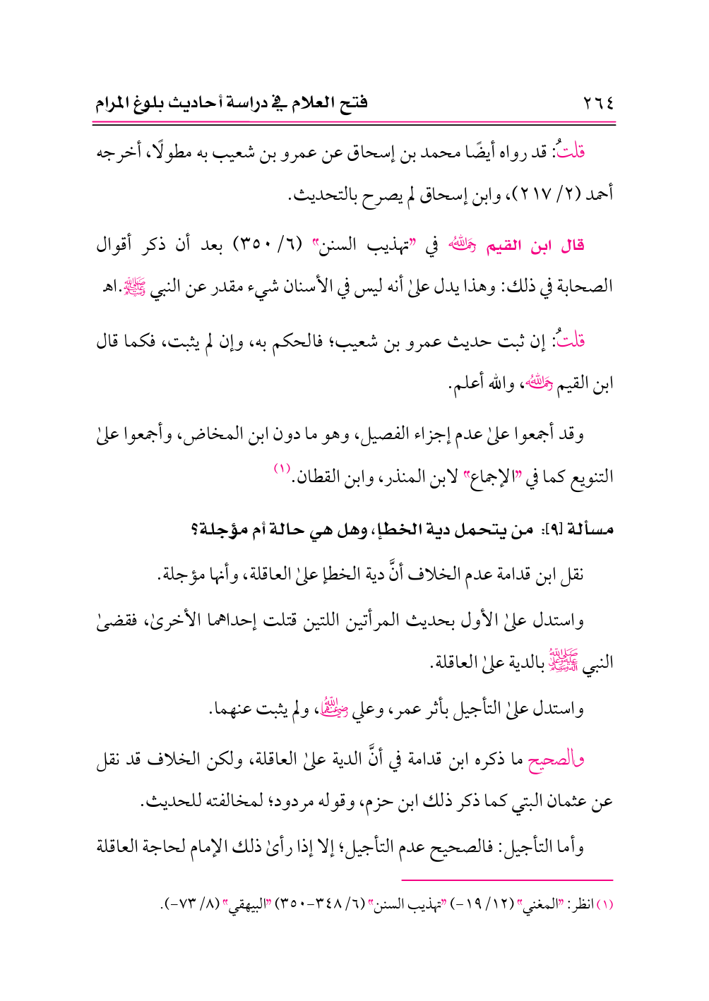 (¬١) انظر: «المغني» (١٢/ ١٩ - ) «تهذيب السنن» (٦/ ٣٤٨ - ٣٥٠) «البيهقي» (٨/ ٧٣ - ).