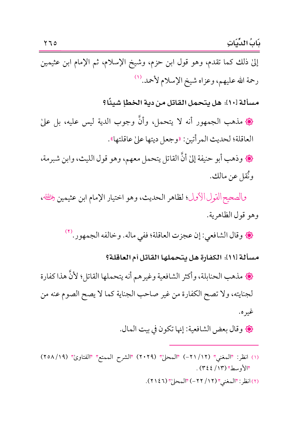 (¬١) انظر: «المغني» (١٢/ ٢١ - ) «المحلى» (٢٠٢٩) «الشرح الممتع» «الفتاوى» (١٩/ ٢٥٨) «الأوسط» (١٣/ ٣٤٤).