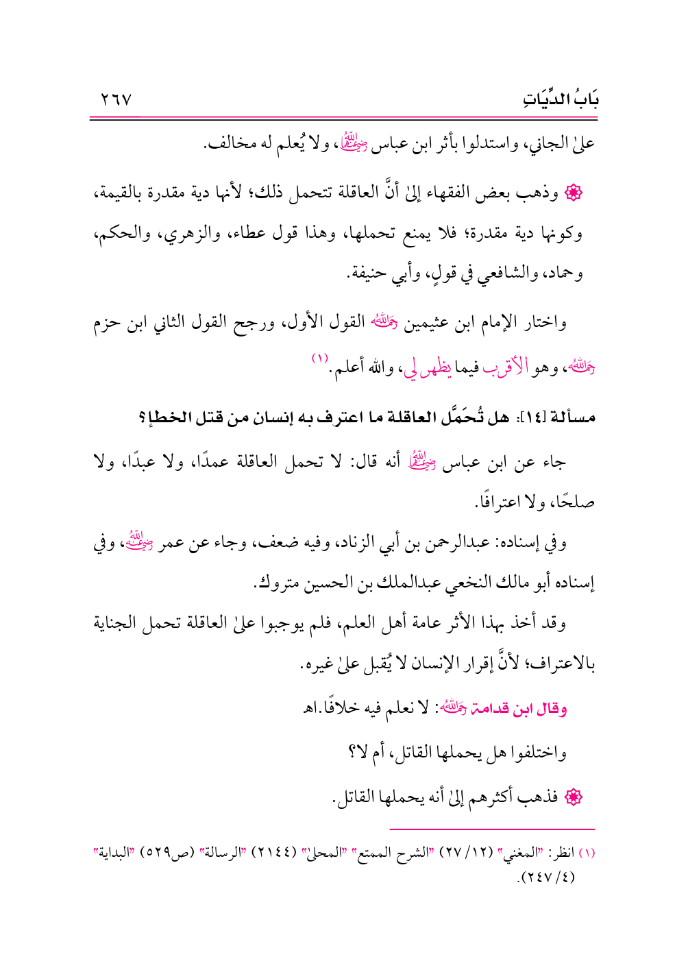 (¬١) انظر: «المغني» (١٢/ ٢٧) «الشرح الممتع» «المحلى» (٢١٤٤) «الرسالة» (ص ٥٢٩) «البداية» (٤/ ٢٤٧).