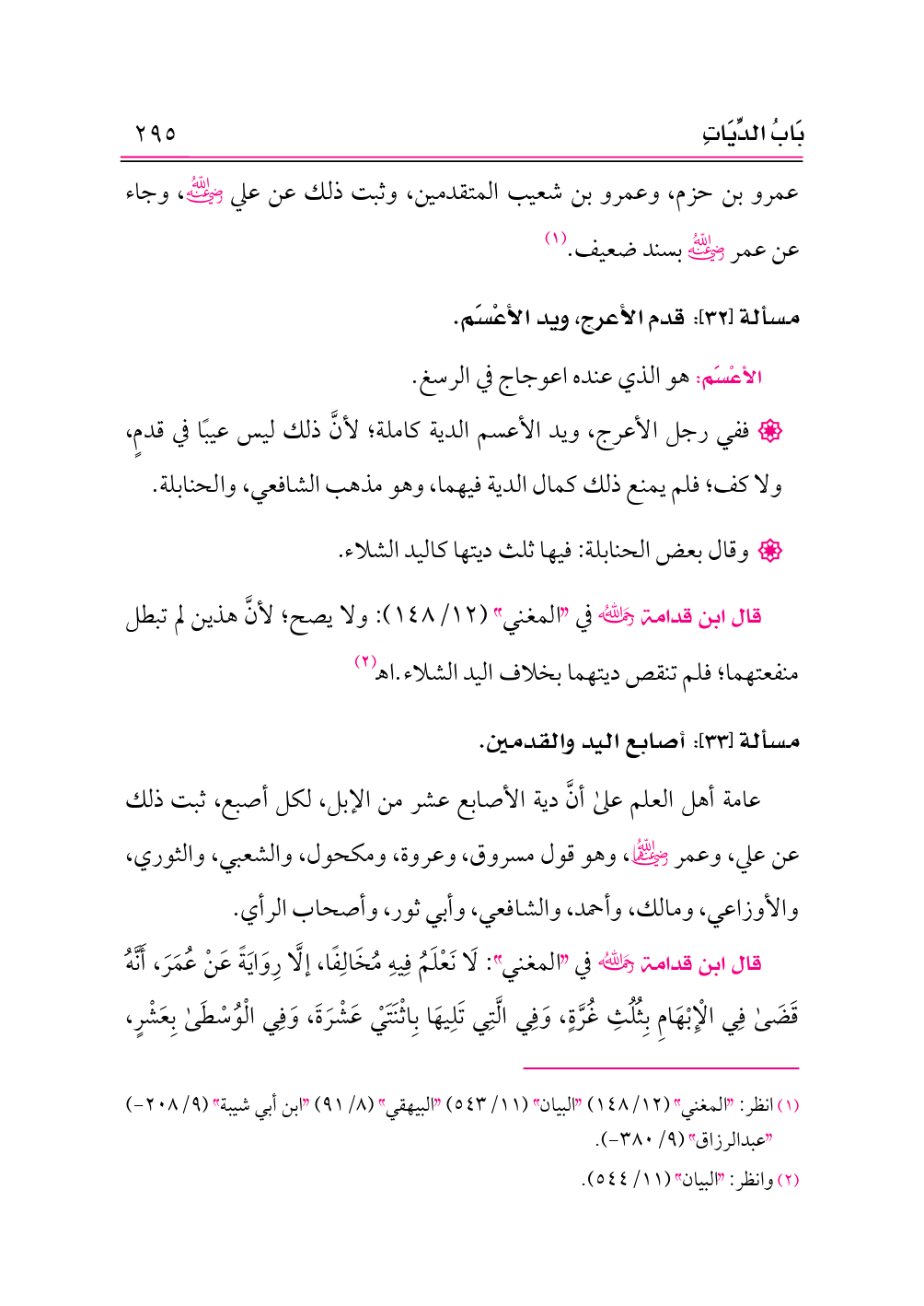 (¬١) انظر: «المغني» (١٢/ ١٤٨) «البيان» (١١/ ٥٤٣) «البيهقي» (٨/ ٩١) «ابن أبي شيبة» (٩/ ٢٠٨ - ) «عبدالرزاق» (٩/ ٣٨٠ - ).