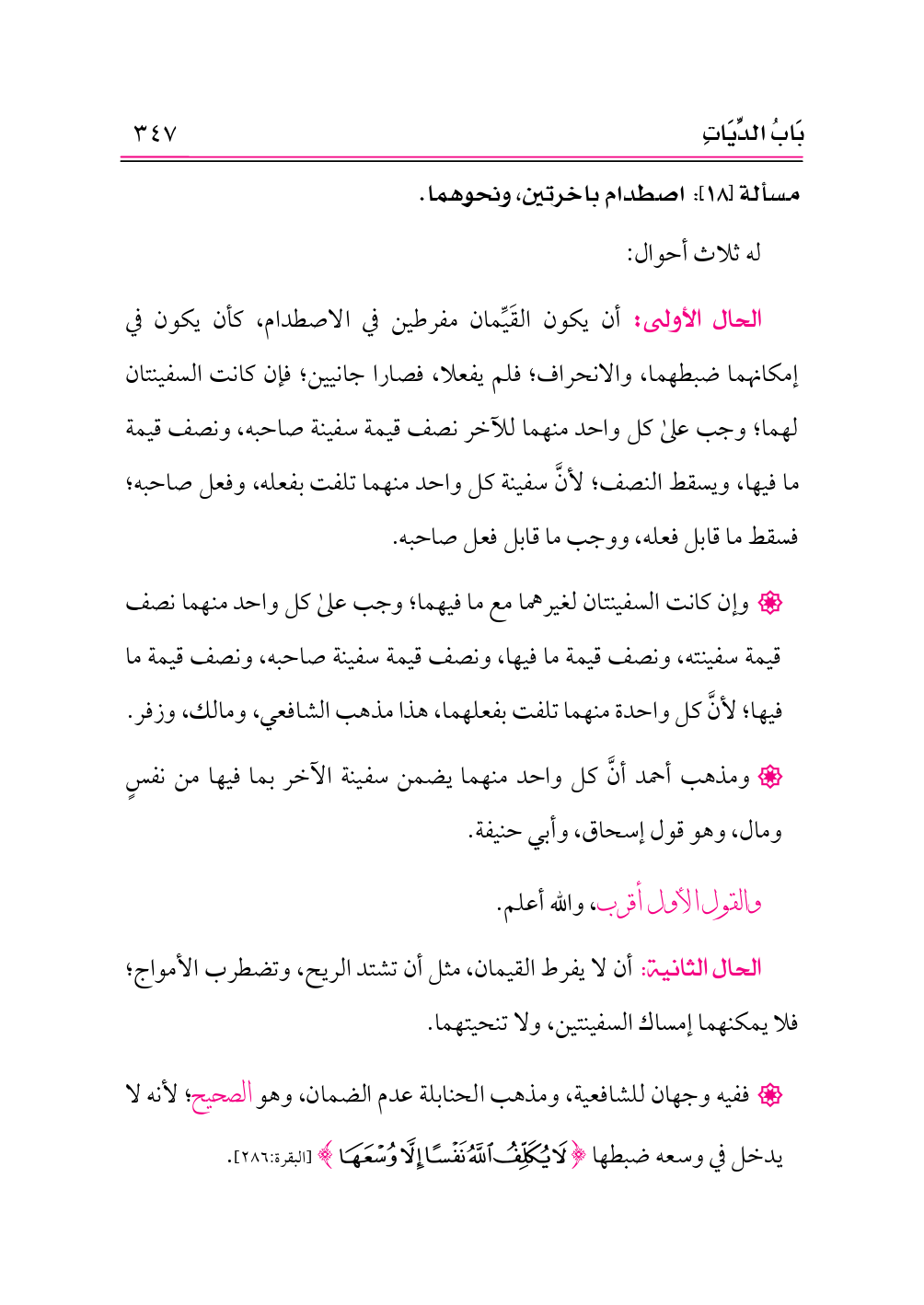 مسألة [١٨]: اصطدام باخرتين، ونحوهما.