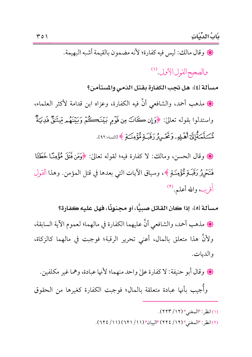 (¬٢) انظر: «المغني» (١٢/ ٢٢٤) «البيان» (١١/ ٦٢١) (١١/ ٦٢٤).