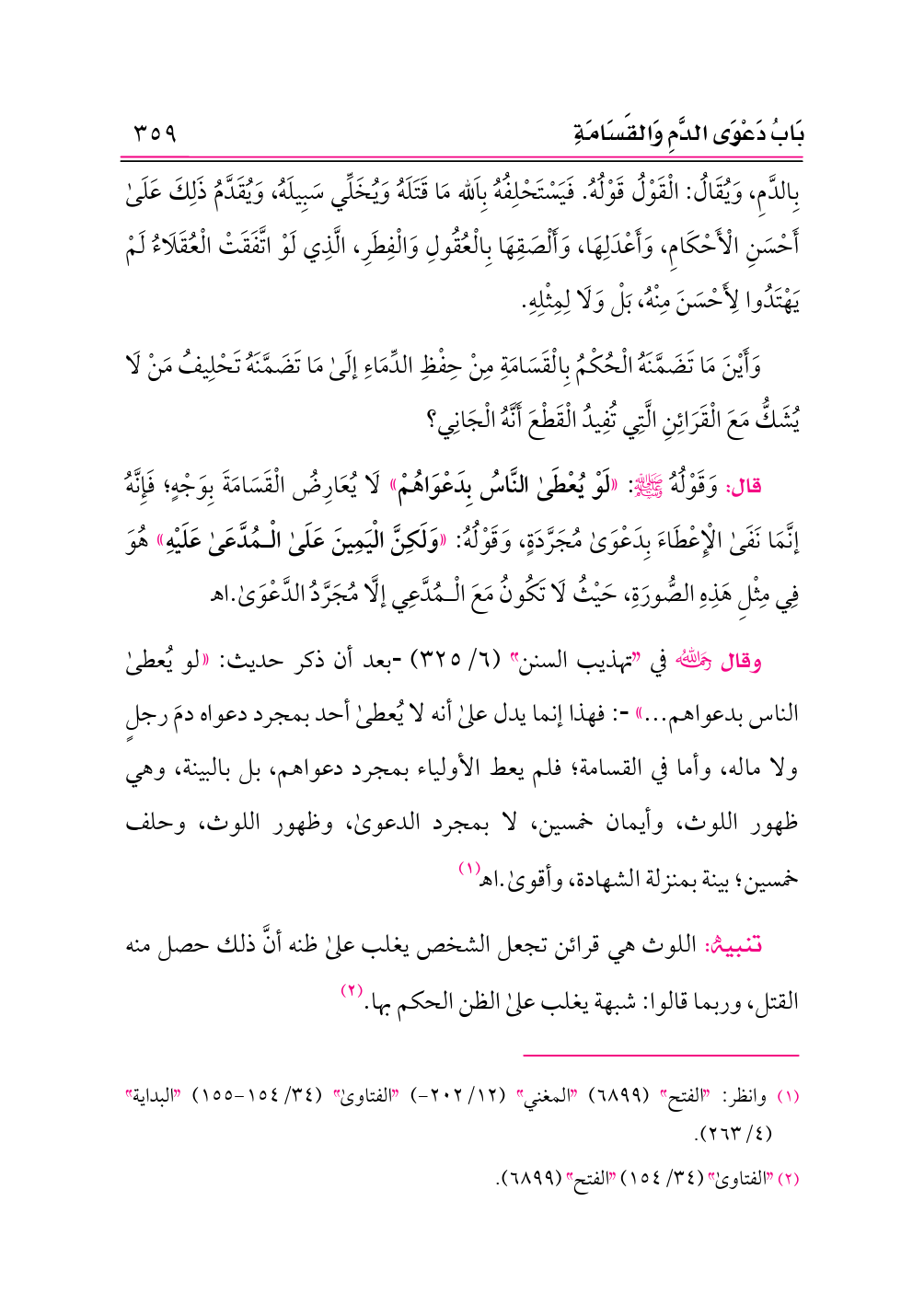 تنبيه: اللوث هي قرائن تجعل الشخص يغلب على ظنه أنَّ ذلك حصل منه القتل، وربما قالوا: شبهة يغلب على الظن الحكم بها. (¬٢)