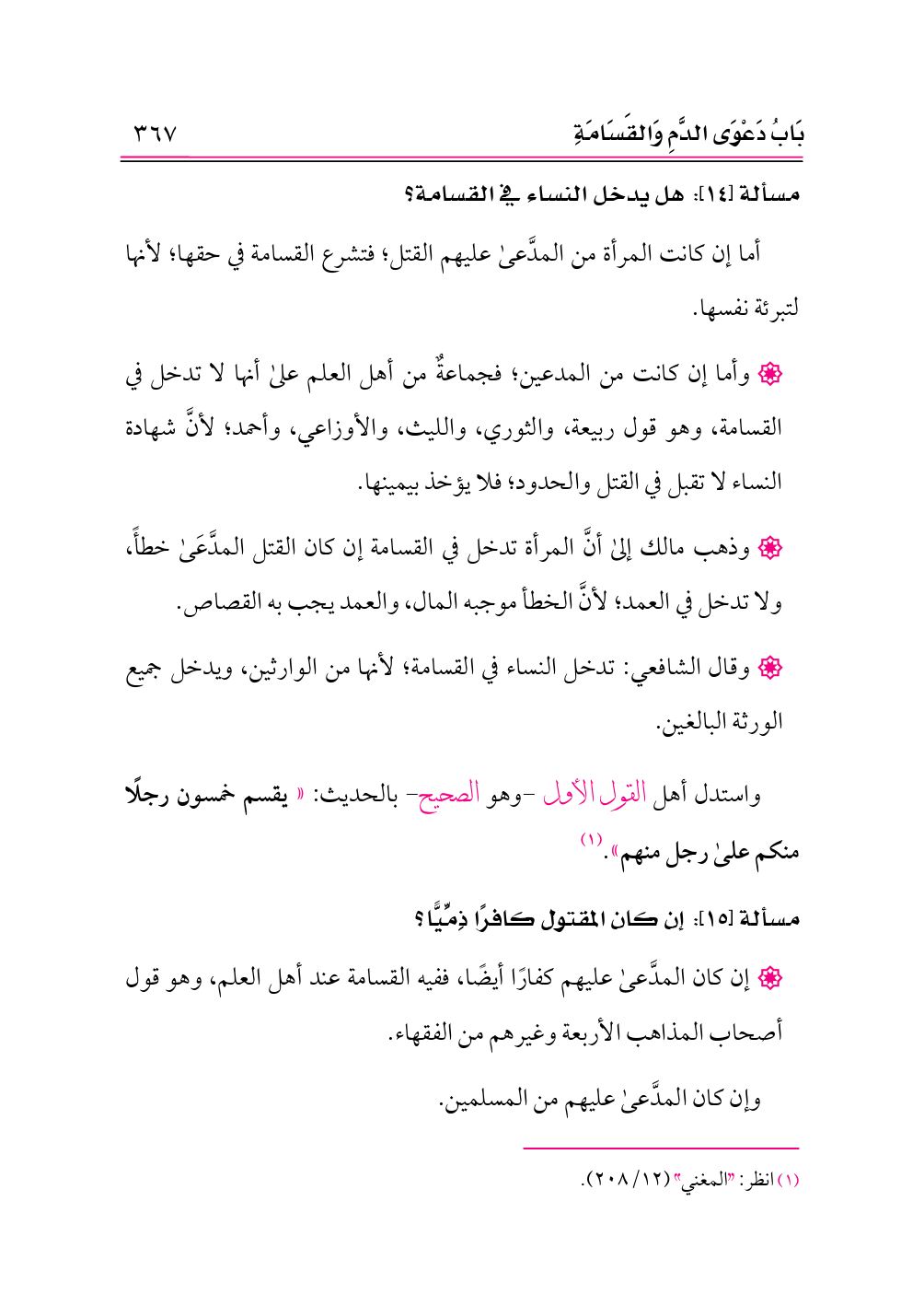 مسألة [١٤]: هل يدخل النساء في القسامة؟