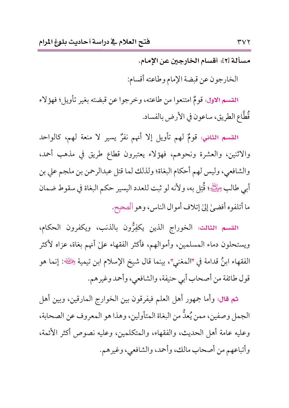 مسألة [٢]: أقسام الخارجين عن الإمام.