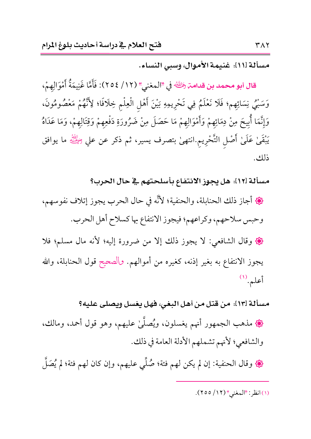 مسألة [١١]: غنيمة الأموال، وسبي النساء.