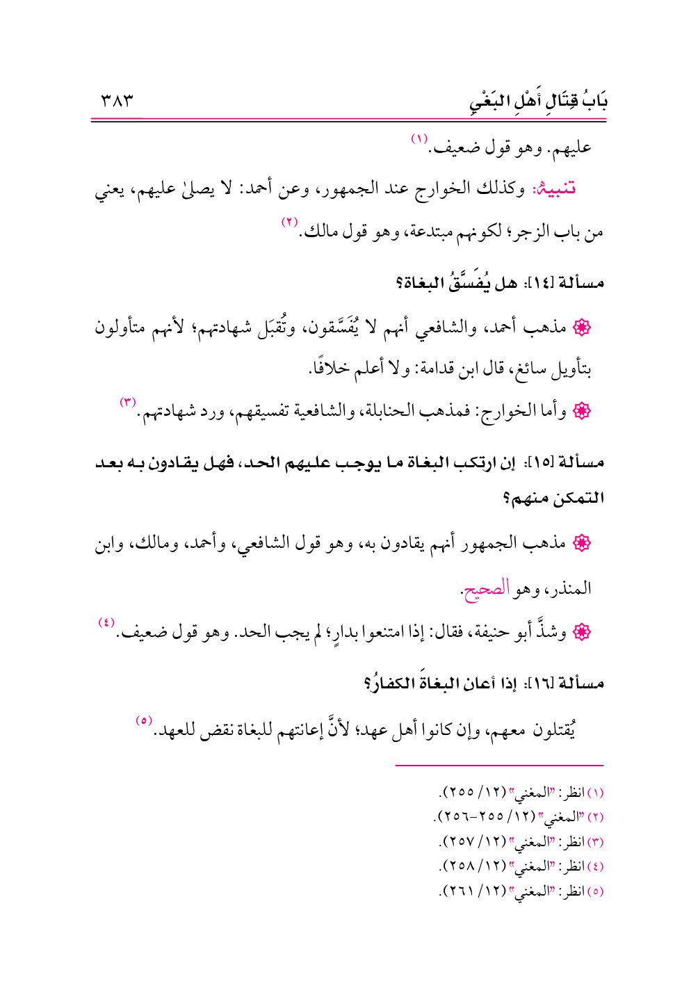 • وأما الخوارج: فمذهب الحنابلة، والشافعية تفسيقهم، ورد شهادتهم. (¬٣)