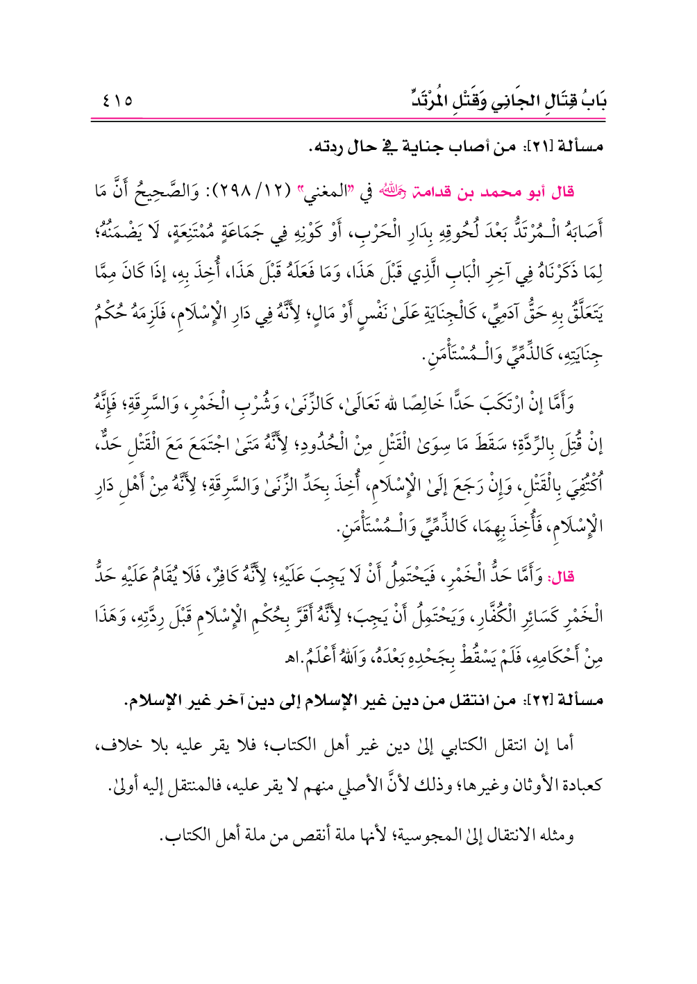 مسألة [٢١]: من أصاب جناية في حال ردته.