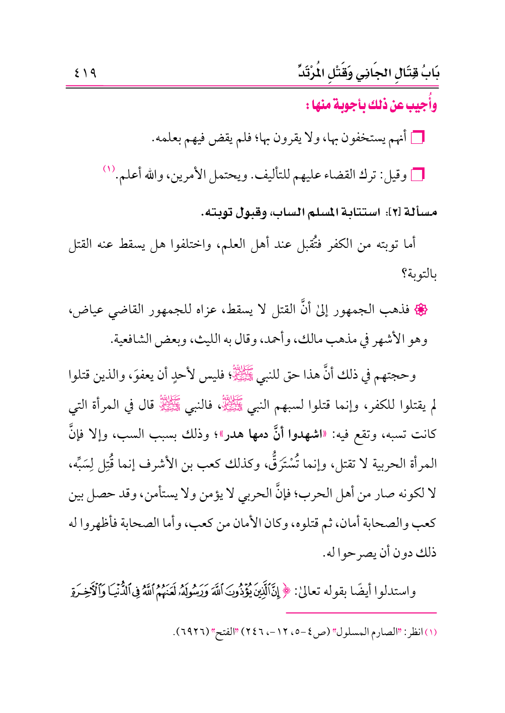 (¬١) انظر: «الصارم المسلول» (ص ٤ - ٥، ١٢ - ، ٢٤٦) «الفتح» (٦٩٢٦).