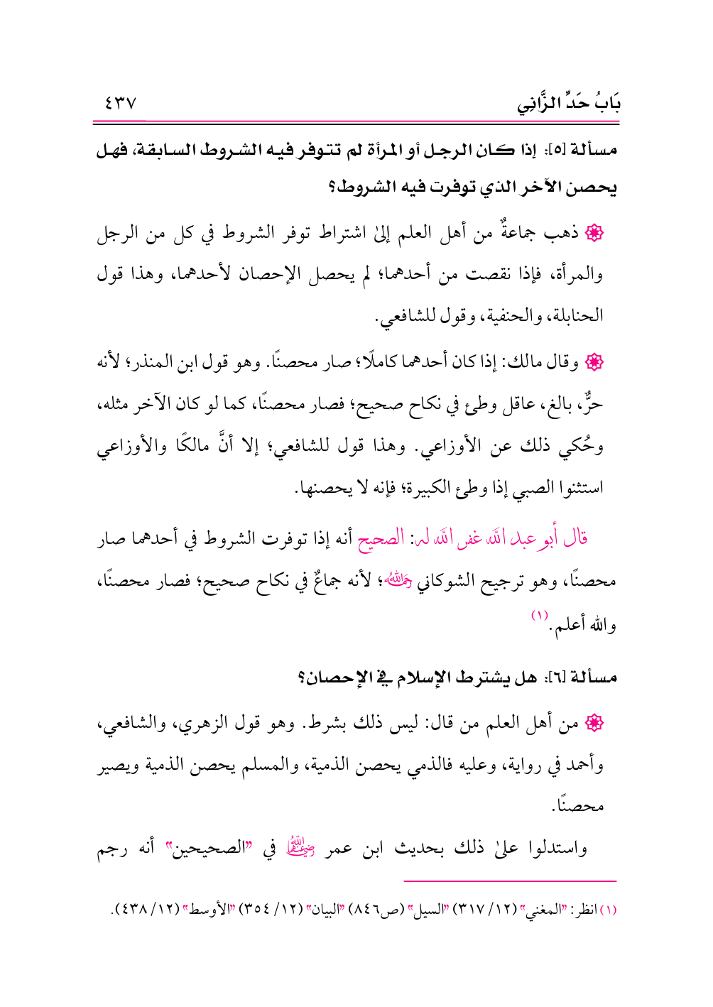 (¬١) انظر: «المغني» (١٢/ ٣١٧) «السيل» (ص ٨٤٦) «البيان» (١٢/ ٣٥٤) «الأوسط» (١٢/ ٤٣٨).