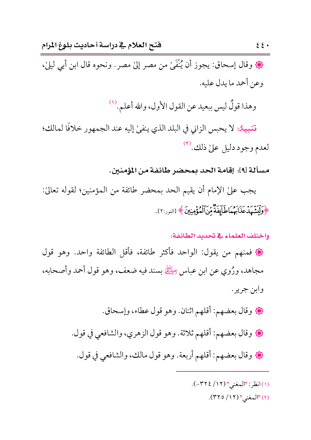 مسألة [٩]: إقامة الحد بمحضر طائفة من المؤمنين.