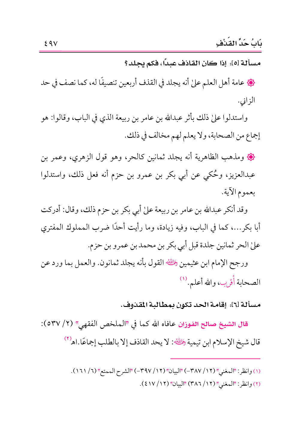 (¬١) وانظر: «المغني» (١٢/ ٣٨٧ - ) «البيان» (١٢/ ٣٩٧ - ) «الشرح الممتع» (٦/ ١٦١).