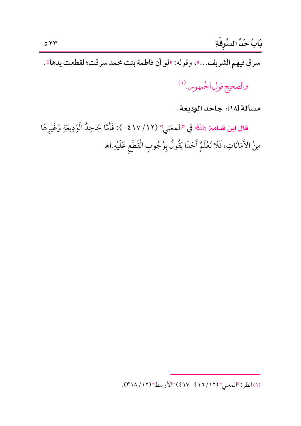 (¬١) انظر: «المغني» (١٢/ ٤١٦ - ٤١٧) «الأوسط» (١٢/ ٣١٨).