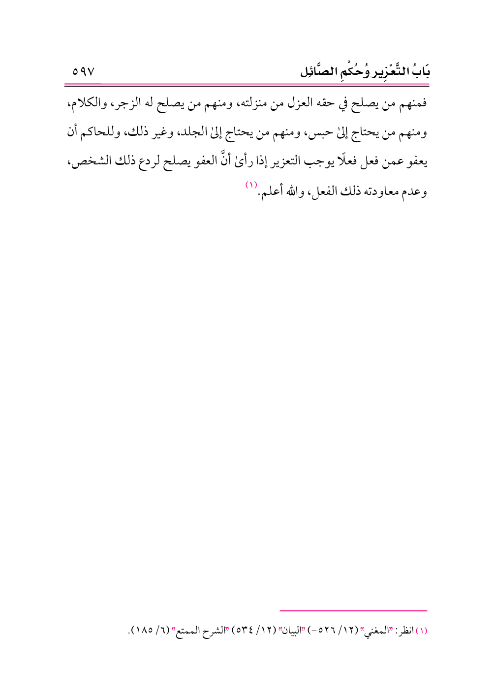 (¬١) انظر: «المغني» (١٢/ ٥٢٦ - ) «البيان» (١٢/ ٥٣٤) «الشرح الممتع» (٦/ ١٨٥).