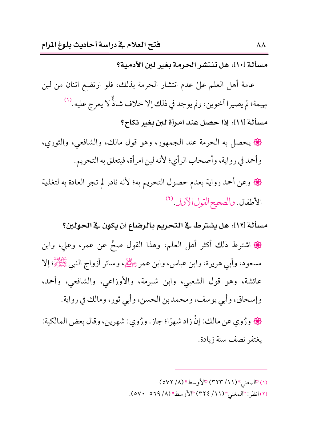 مسألة [١٢]: هل يشترط في التحريم بالرضاع أن يكون في الحولين؟