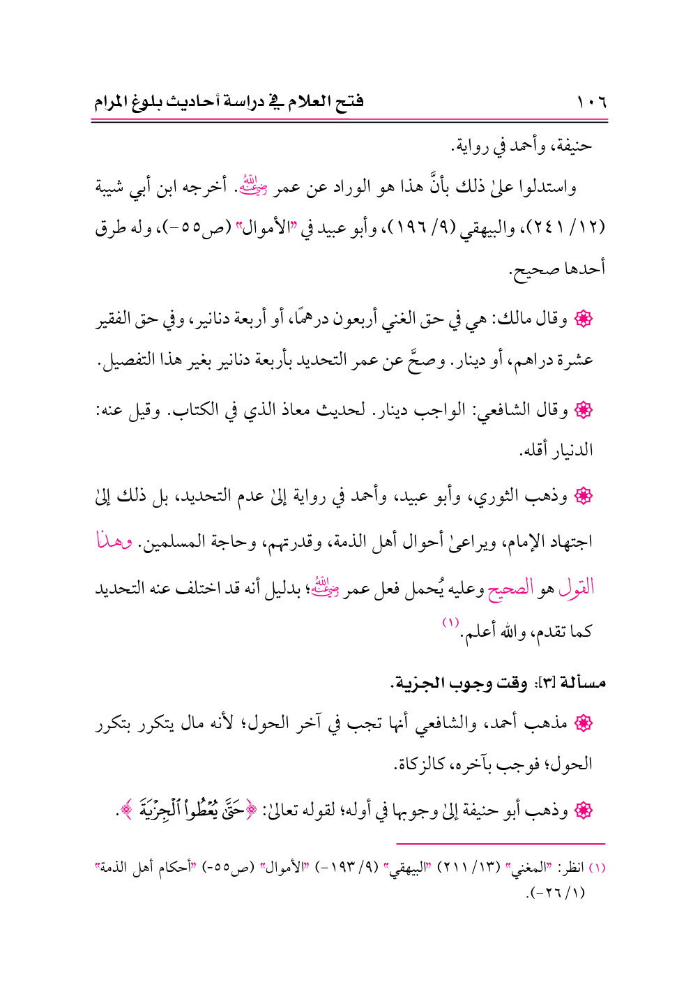 (¬١) انظر: «المغني» (١٣/ ٢١١) «البيهقي» (٩/ ١٩٣ - ) «الأموال» (ص ٥٥) «أحكام أهل الذمة» (١/ ٢٦ - ).