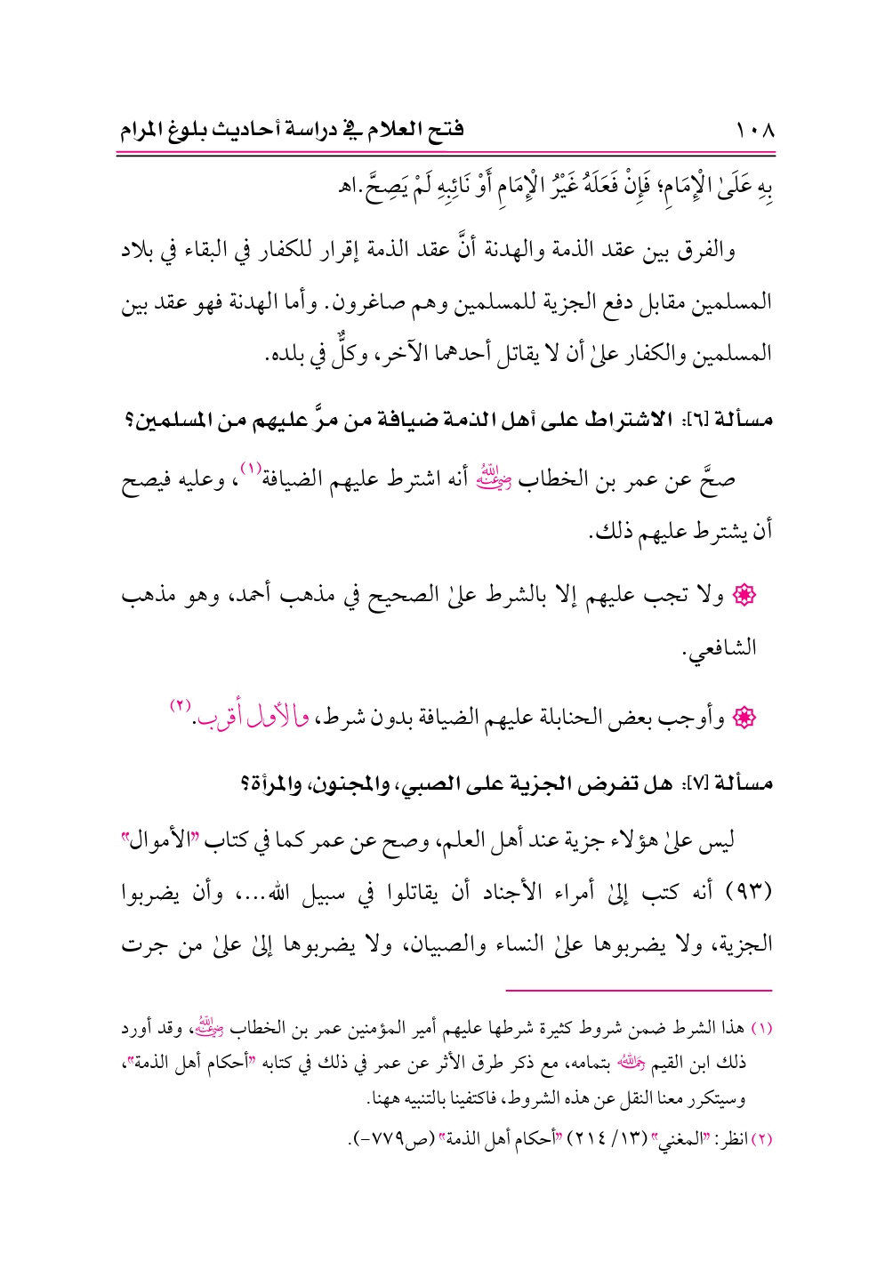 • وأوجب بعض الحنابلة عليهم الضيافة بدون شرط، والأول أقرب. (¬٢)