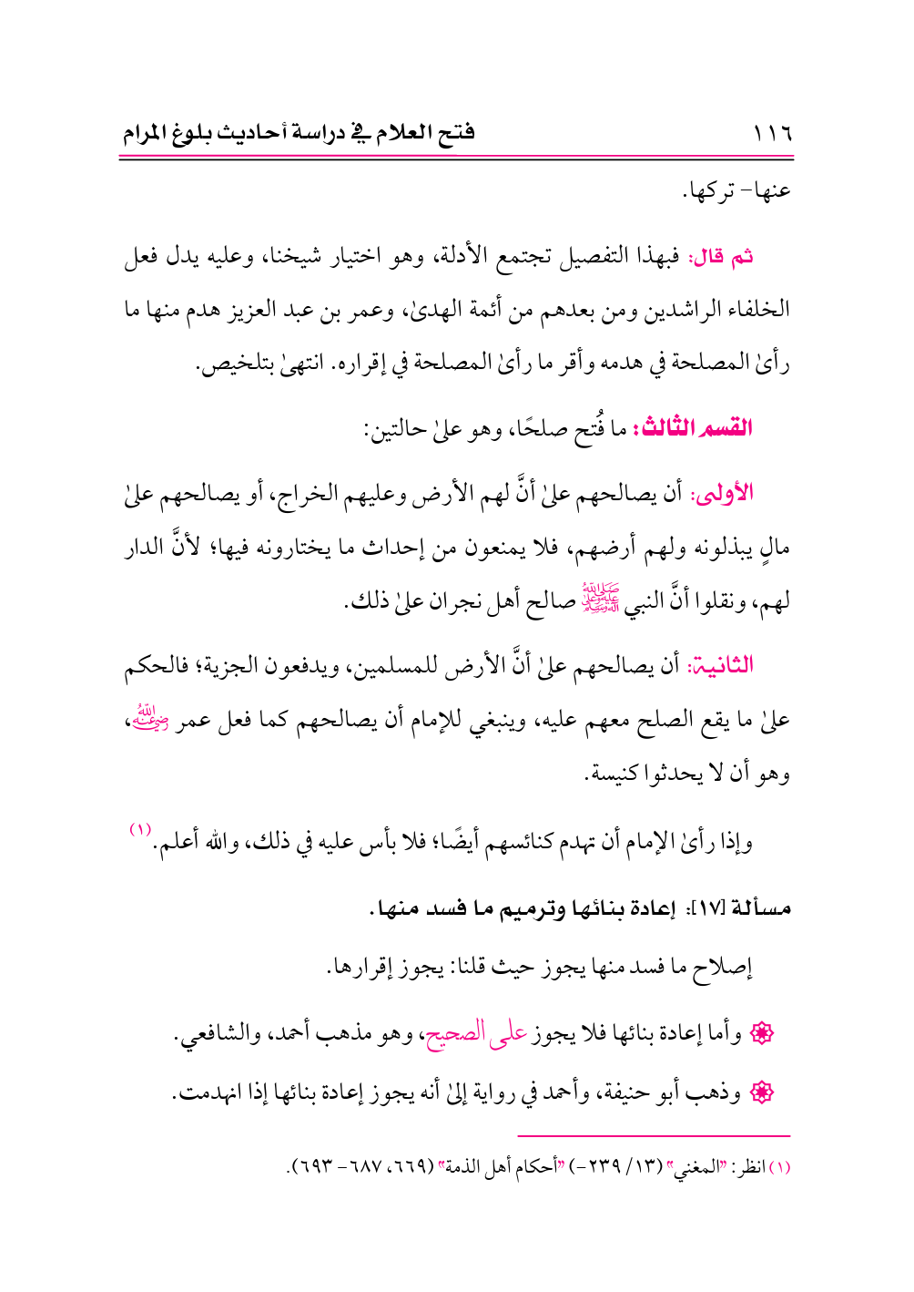 (¬١) انظر: «المغني» (١٣/ ٢٣٩ - ) «أحكام أهل الذمة» (٦٦٩، ٦٨٧ - ٦٩٣).