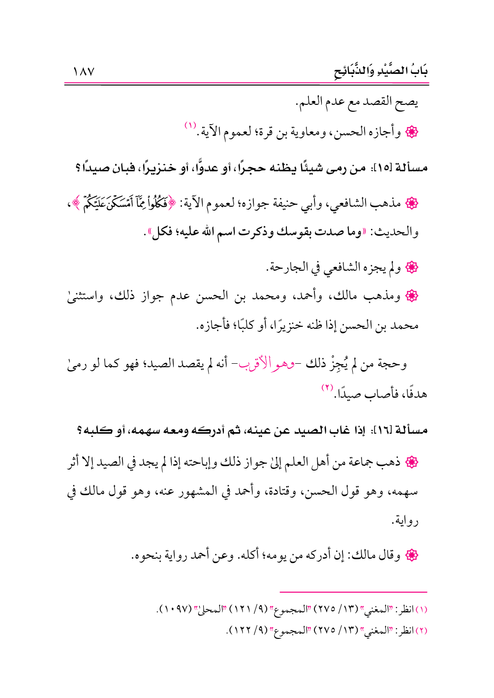 وحجة من لم يُجِزْ ذلك -وهو الأقرب- أنه لم يقصد الصيد؛ فهو كما لو رمى هدفًا، فأصاب صيدًا. (¬٢)