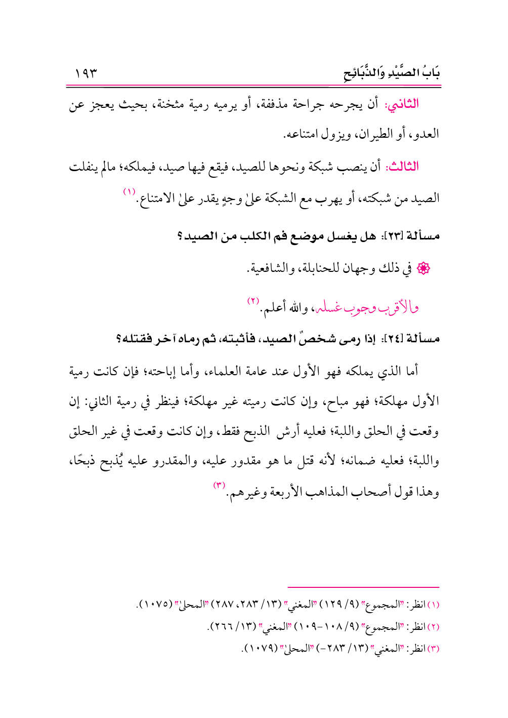 مسألة [٢٣]: هل يغسل موضع فم الكلب من الصيد؟