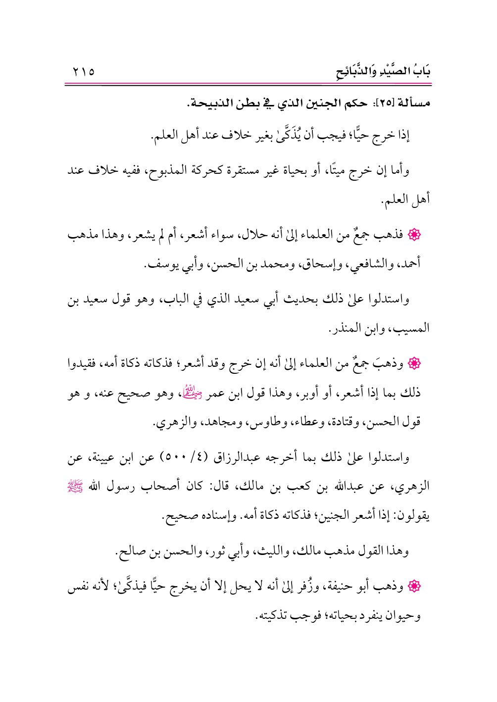 مسألة [٢٥]: حكم الجنين الذي في بطن الذبيحة.