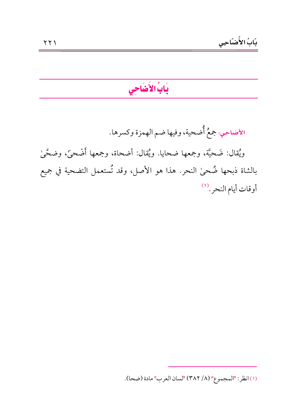 (¬١) انظر: «المجموع» (٨/ ٣٨٢) «لسان العرب» مادة (ضحا).