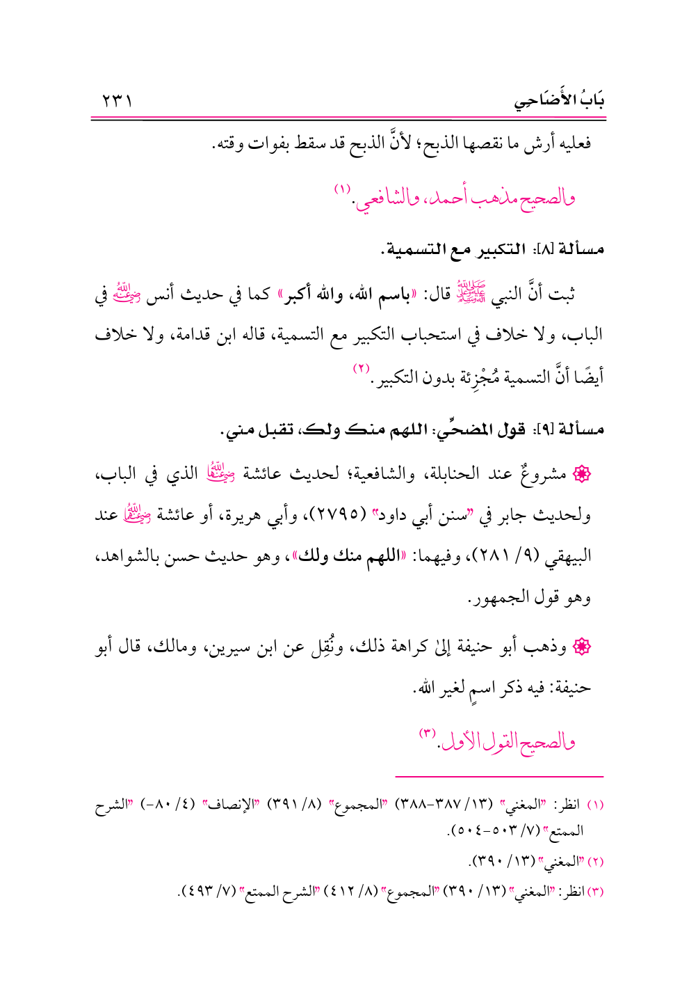 (¬٣) انظر: «المغني» (١٣/ ٣٩٠) «المجموع» (٨/ ٤١٢) «الشرح الممتع» (٧/ ٤٩٣).