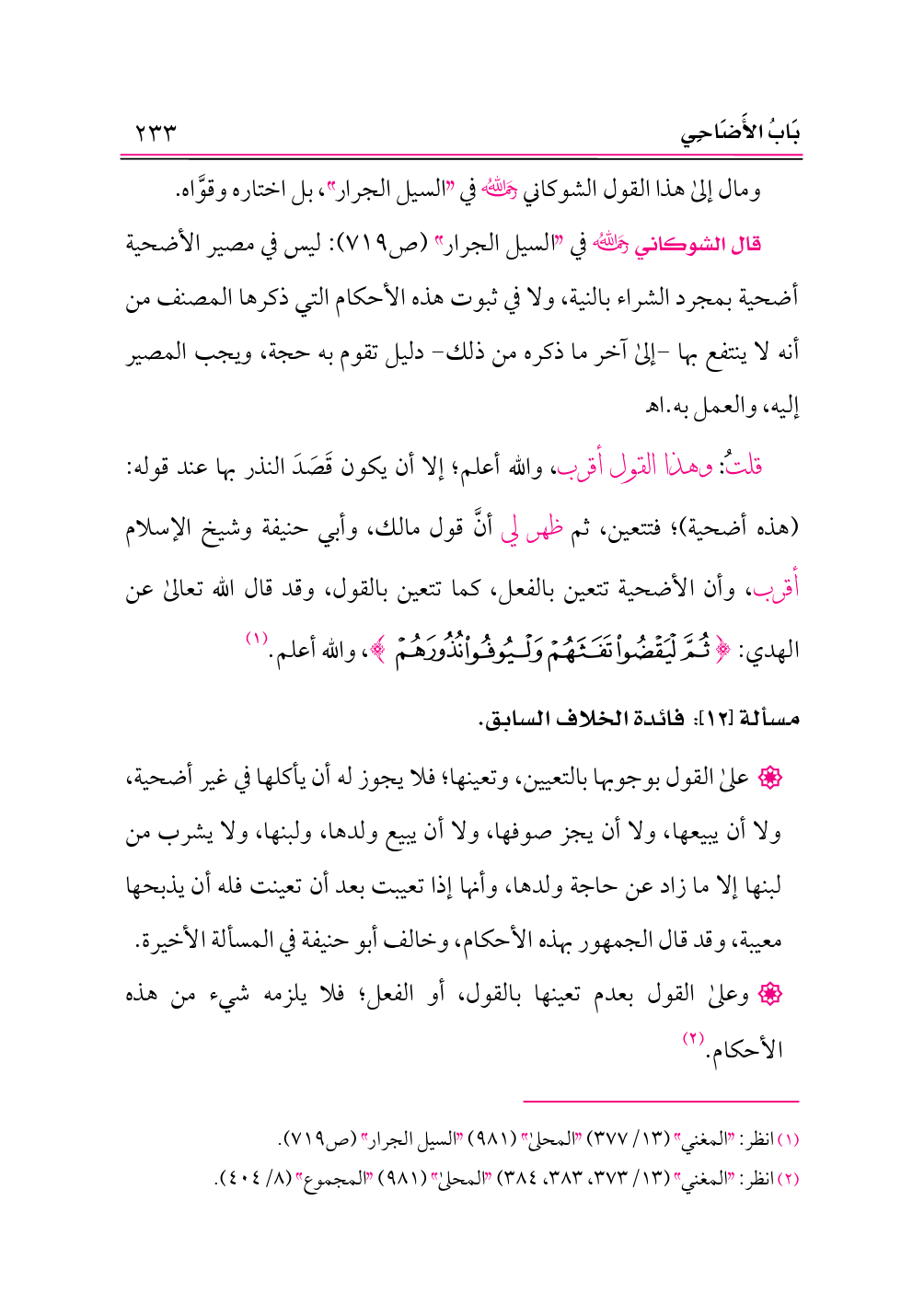 (¬١) انظر: «المغني» (١٣/ ٣٧٧) «المحلى» (٩٨١) «السيل الجرار» (ص ٧١٩).