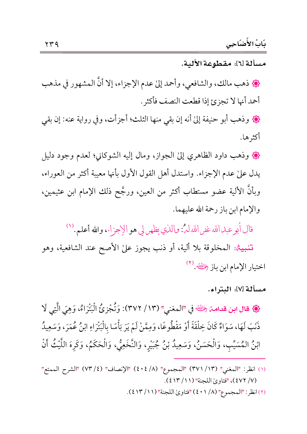 تنبيه: المخلوقة بلا ألية، أو ذنب يجوز على الأصح عند الشافعية، وهو اختيار الإمام ابن باز -رحمه الله-. (¬٢)