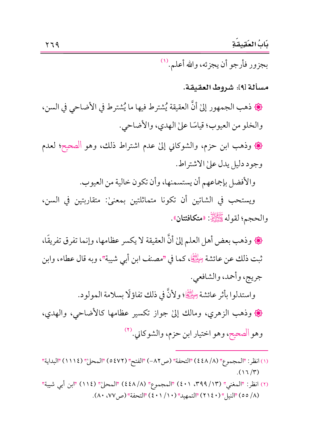(¬١) انظر: «المجموع» (٨/ ٤٤٨) «التحفة» (ص ٨٢ - ) «الفتح» (٥٤٧٢) «المحلى» (١١١٤) «البداية» (٣/ ١٦).