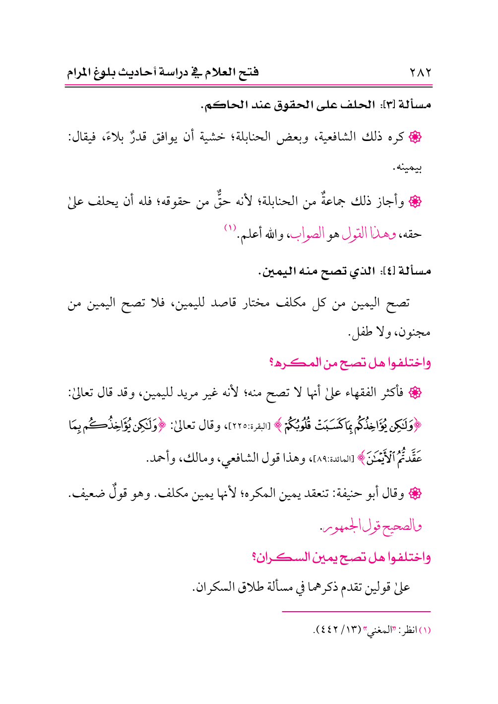مسألة [٣]: الحلف على الحقوق عند الحاكم.