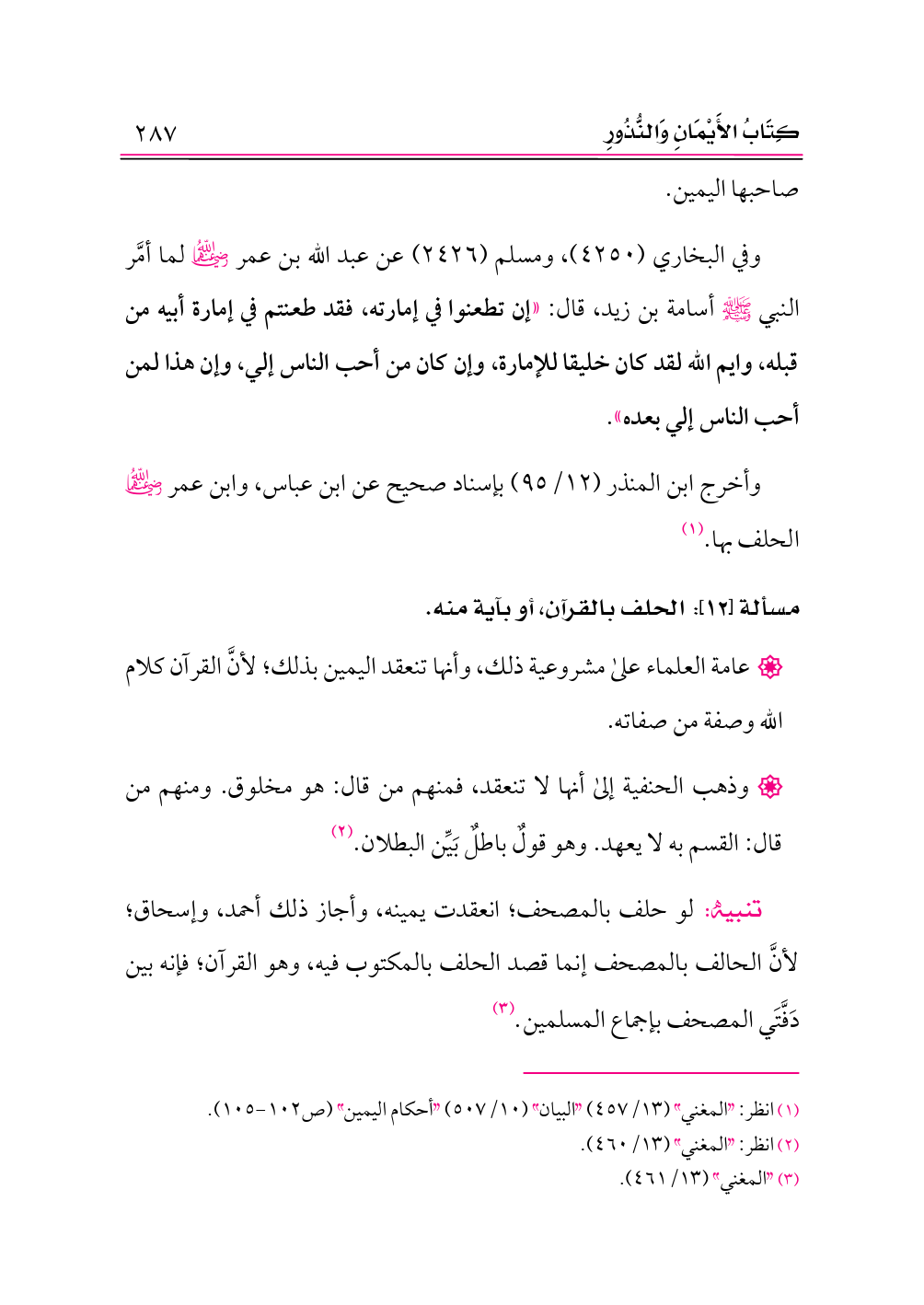 (¬١) انظر: «المغني» (١٣/ ٤٥٧) «البيان» (١٠/ ٥٠٧) «أحكام اليمين» (ص ١٠٢ - ١٠٥).