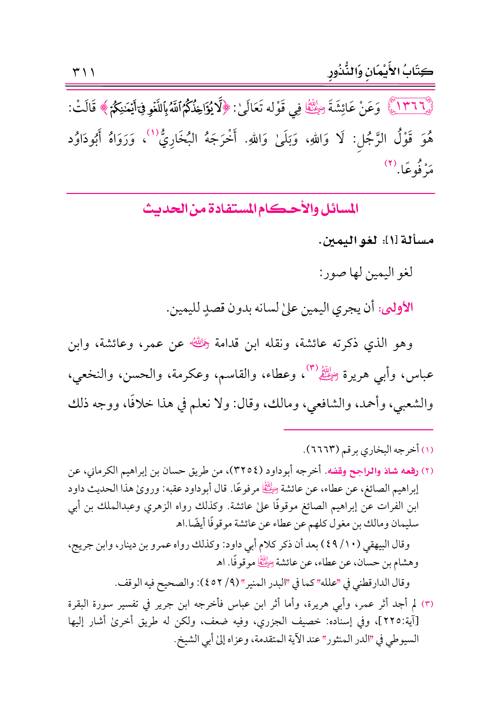 (¬٣) لم أجد أثر عمر، وأبي هريرة، وأما أثر ابن عباس فأخرجه ابن جرير في تفسير سورة البقرة [آية:٢٢٥]، وفي إسناده: خصيف الجزري، وفيه ضعف، ولكن له طريق أخرى أشار إليها السيوطي في «الدر المنثور» عند الآية المتقدمة، وعزاه إلى أبي الشيخ.