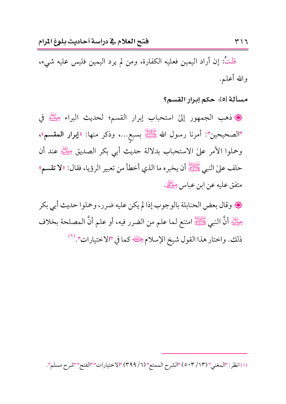 (¬١) انظر: «المغني» (١٣/ ٥٠٣) «الشرح الممتع» (٦/ ٣٩٩) «الاختيارات» «الفتح» «شرح مسلم».