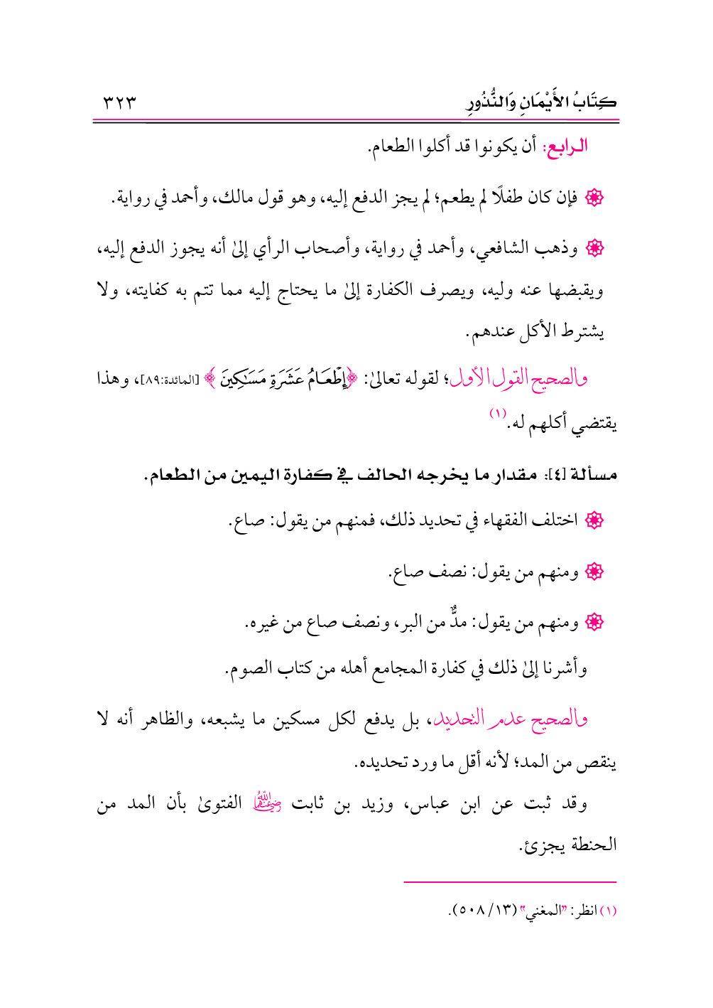 مسألة [٤]: مقدار ما يخرجه الحالف في كفارة اليمين من الطعام.