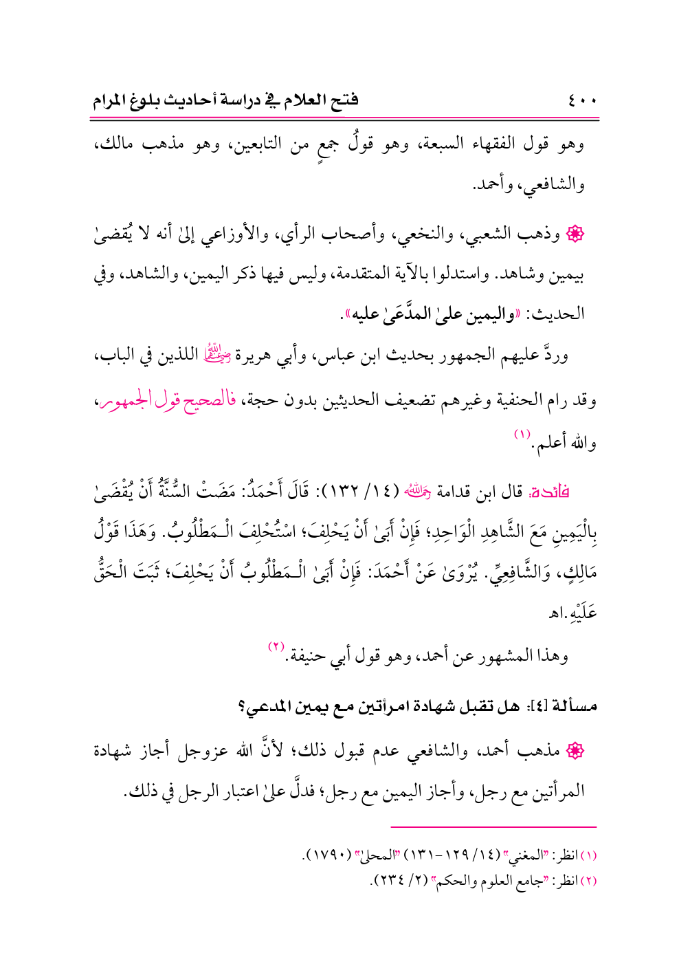 مسألة [٤]: هل تقبل شهادة امرأتين مع يمين المدعي؟
