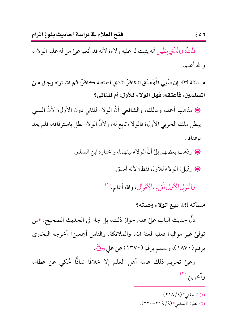 كتاب فتح العلام في دراسة أحاديث بلوغ المرام ط 4 (اسم الجزء: 10)