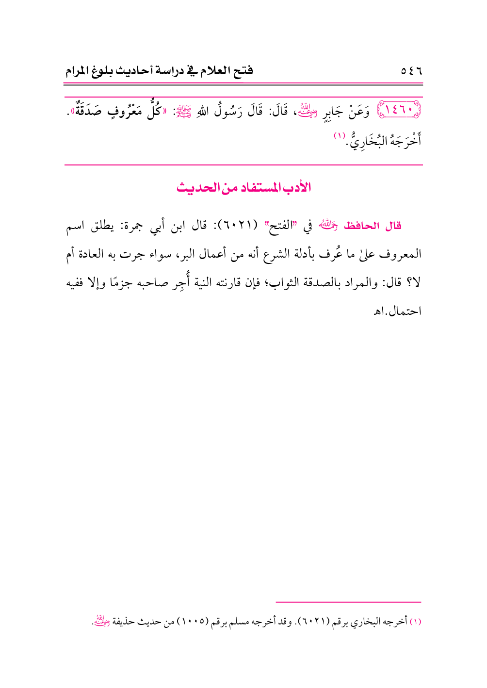 ١٤٦٠ - وَعَنْ جَابِرٍ -رضي الله عنه-، قَالَ: قَالَ رَسُولُ اللهِ - صلى الله عليه وسلم -: «كُلُّ مَعْرُوفٍ صَدَقَةٌ». أَخْرَجَهُ البُخَارِيُّ. (¬١)