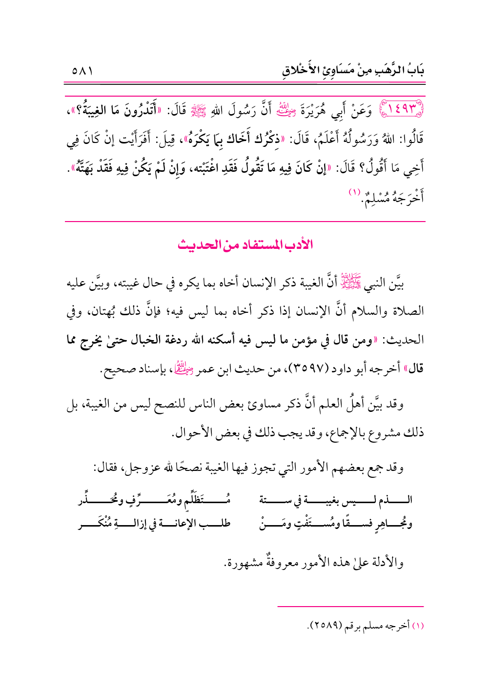 الذم ليس بغيبة في ستة ... مُتَظَلِّمٍ ومُعَرِّفٍ ومُحَذِّر