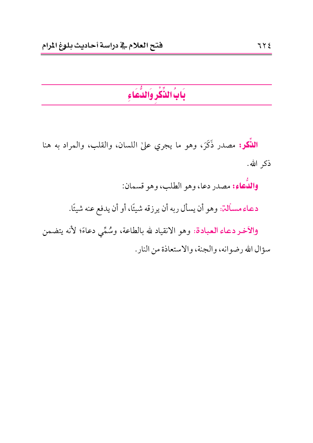 بَابُ الذِّكْرِ وَالدُّعَاءِ