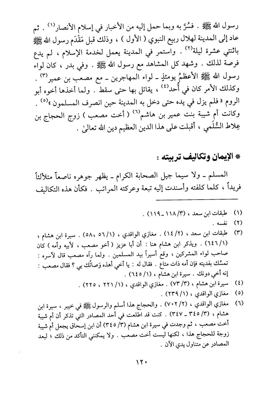 (6) مغازي الواقدي، (2/ 702) . والحجاج هذا أسلم والرسول صلّى الله عليه وسلّم في خيبر، سيرة ابن هشام، (3/ 345- 347) . كنت قد اطلعت في أحد المصادر التي تذكر أن أم شيبة أخت مصعب، ثم وجدت في سيرة ابن هشام (3/ 345) أن ابن إسحاق يجعل أم شيبة زوجة للحجاج هذا، لكنها ليست أخت مصعب. ولا يمكنني التأكد من ذلك؛ لبعد المصادر عن متناول يدي الآن.