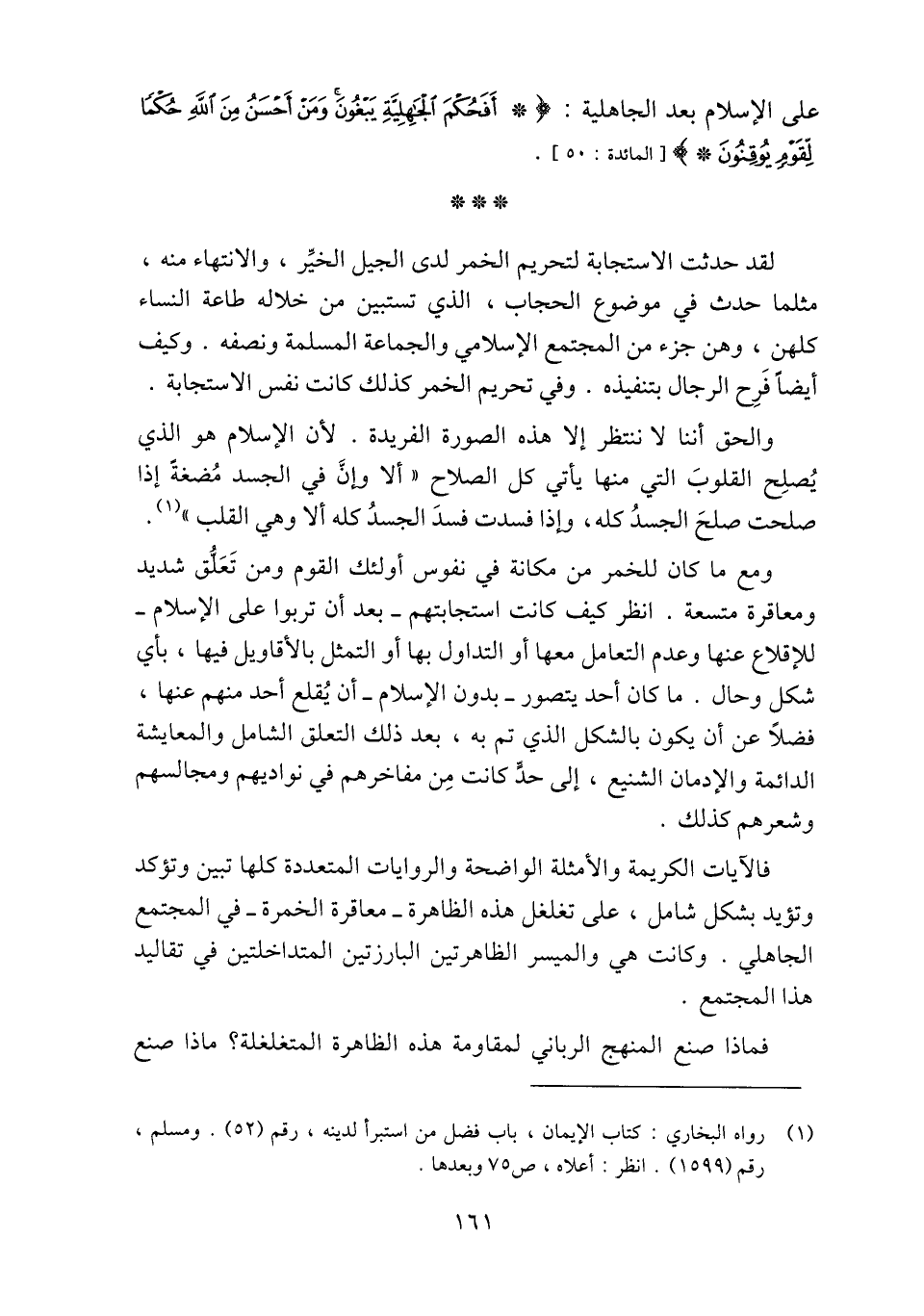 (1) رواه البخاري: كتاب الإيمان، باب فضل من استبرأ لدينه، رقم (52) . ومسلم، رقم (1599) . انظر: أعلاه، ص 75 وبعدها.