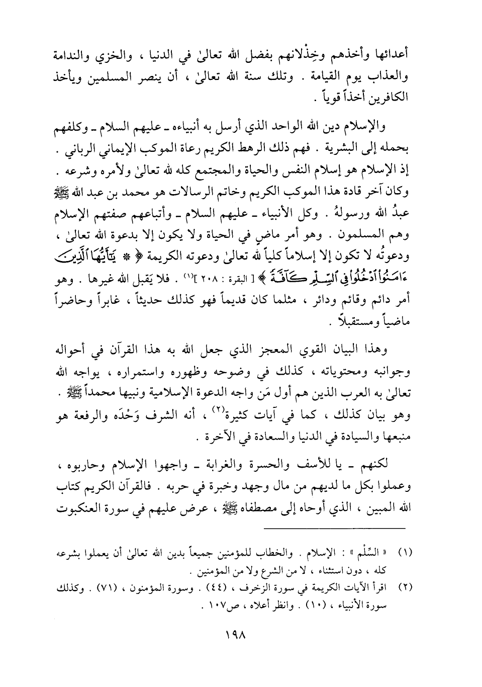(2) اقرأ الآيات الكريمة في سورة الزخرف، (44) . وسورة المؤمنون، (71) . وكذلك سورة الأنبياء، (10) . وانظر أعلاه، ص 107.