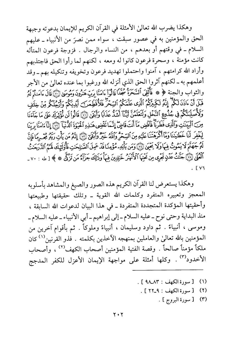 وهكذا يستعرض لنا القرآن الكريم هذه الصور والصيغ والمشاهد بأسلوبه المعجز وتعبيره المتفرد وكلمات الله القوية- وتلك حقيقتها وطبيعتها وأحقيتها المؤكدة المتجددة المتفردة- في هذا البيان لدعوات الله السابقة، منذ البداية وحتى نوح- عليه السلام- إلى إبراهيم- أبي الأنبياء- عليه السلام- وموسى، أنبياء. ثم داود وسليمان، أنبياء وملوكا. ثم بأقوام آخرين من المؤمنين بالله تعالى والعاملين بمنهجه الآخذين بكلمته. فذو القرنين «1» كان ملكا مؤمنا صالحا. وقصة الفتية المؤمنين أصحاب الكهف «2» ، وأصحاب الأخدود «3» . وكلها أمثلة على مواجهة الإيمان الأعزل للكفر المدجج