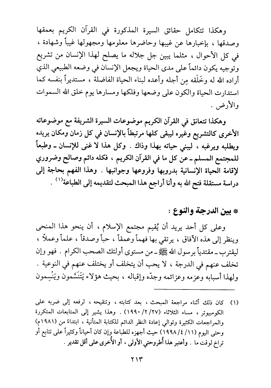 (1) كان ذلك أثناء مراجعة المبحث، بعد كتابته، وتنقيحه، لرفعه إلى ضربه على الكومبيوتر، مساء الثلاثاء (27/ 2/ 1990) . وهذا يشير إلى المتابعات المتكررة والمراجعات الكثيرة وتوالي إعادة النظر الدائم للكتابة المتأنية، ابتداء من (1981 م) وحتى اليوم (11/ 4/ 1998) حيث أجهزه للطباعة وإن كان أحيانا وكثيرا على تتابع أو تراخ لوقت ما. وأعتبر هذا أطروحتي الأولى، أو الآخرى على أقل تقدير.
