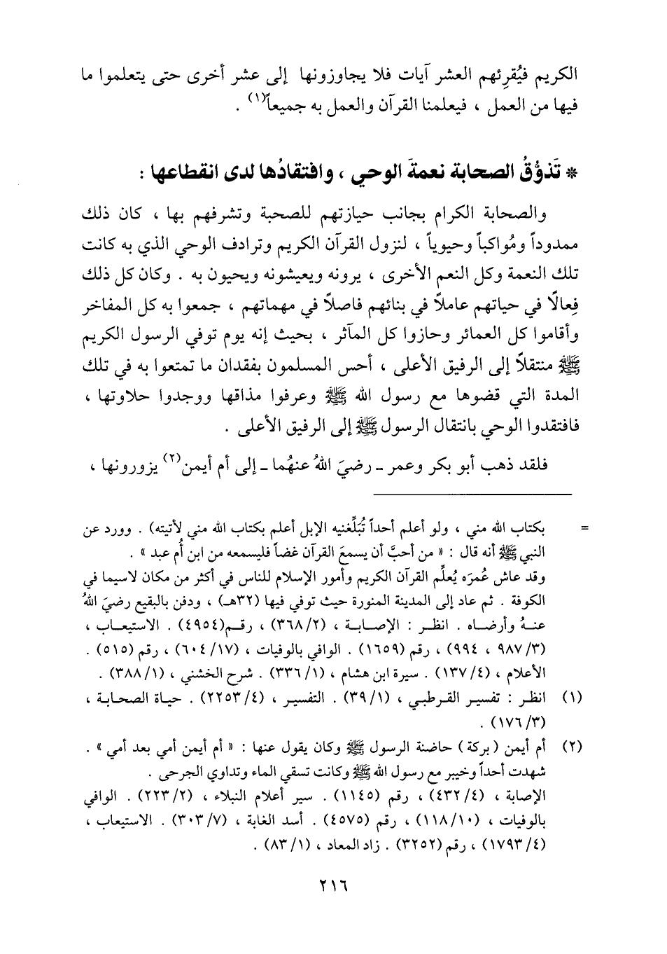 والصحابة الكرام بجانب حيازتهم للصحبة وتشرفهم بها، كان ذلك ممدودا ومواكبا وحيويا، لنزول القرآن الكريم وترادف الوحي الذي به كانت تلك النعمة وكل النعم الآخرى، يرونه ويعيشونه ويحيون به. وكان كل ذلك فعالا في حياتهم عاملا في بنائهم فاصلا في مهماتهم، جمعوا به كل المفاخر وأقاموا كل العمائر وحازوا كل الماثر، بحيث إنه يوم توفي الرسول الكريم صلى الله عليه وسلّم منتقلا إلى الرفيق الأعلى، أحس المسلمون بفقدان ما تمتعوا به في تلك المدة التي قضوها مع رسول الله صلّى الله عليه وسلّم وعرفوا مذاقها ووجدوا حلاوتها، فافتقدوا الوحي بانتقال الرسول صلّى الله عليه وسلّم إلى الرفيق الأعلى.
