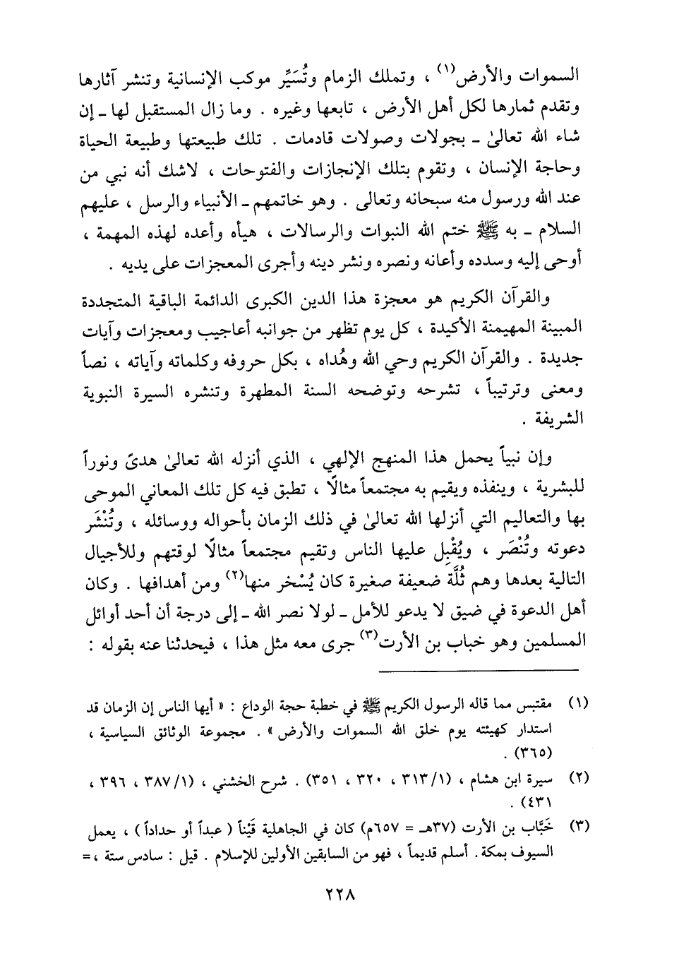 (1) مقتبس مما قاله الرسول الكريم صلّى الله عليه وسلّم في خطبة حجة الوداع: «أيها الناس إن الزمان قد استدار كهيئته يوم خلق الله السموات والأرض» . مجموعة الوثائق السياسية، (365) .